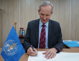 On 21 Oct 2014, Mr Zhang Xiangchen, Assistant Minister of Commerce of China (MOFCOM) signed a memorandum of understanding (MOU) about this donation on behalf of the Chinese government. Dr Bernhard Schwartländer, WHO Representative in China, signed the MOU on behalf of WHO.
